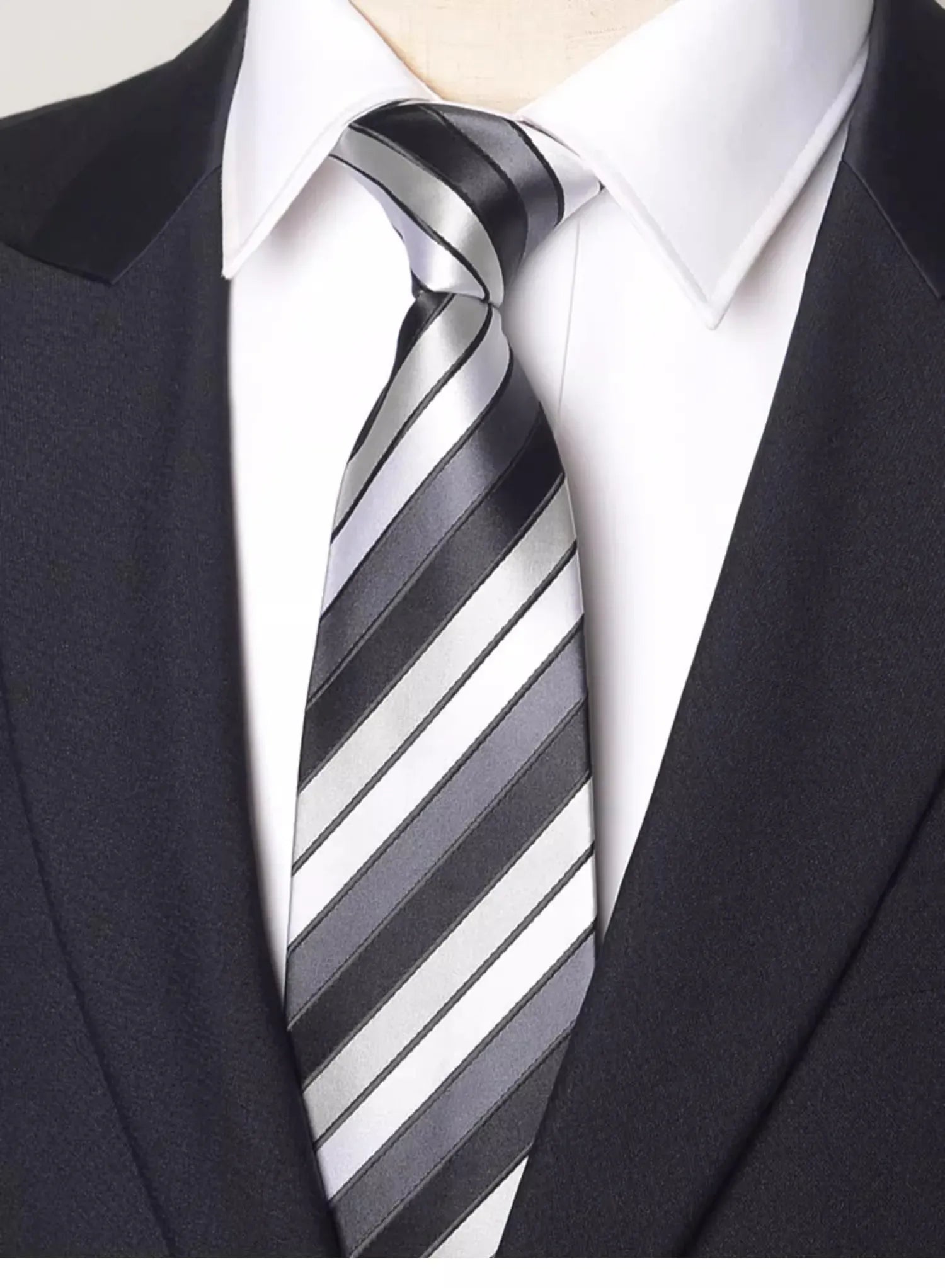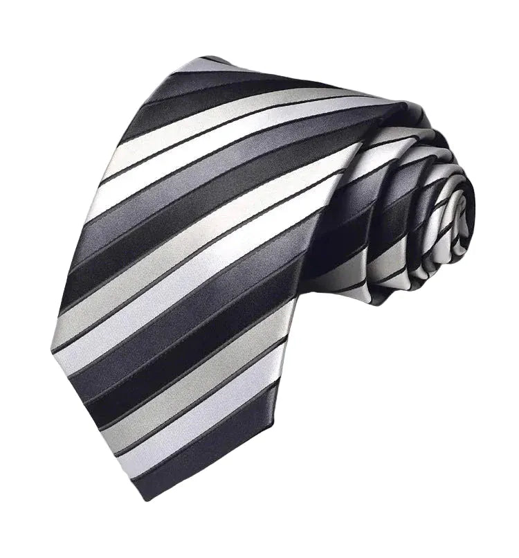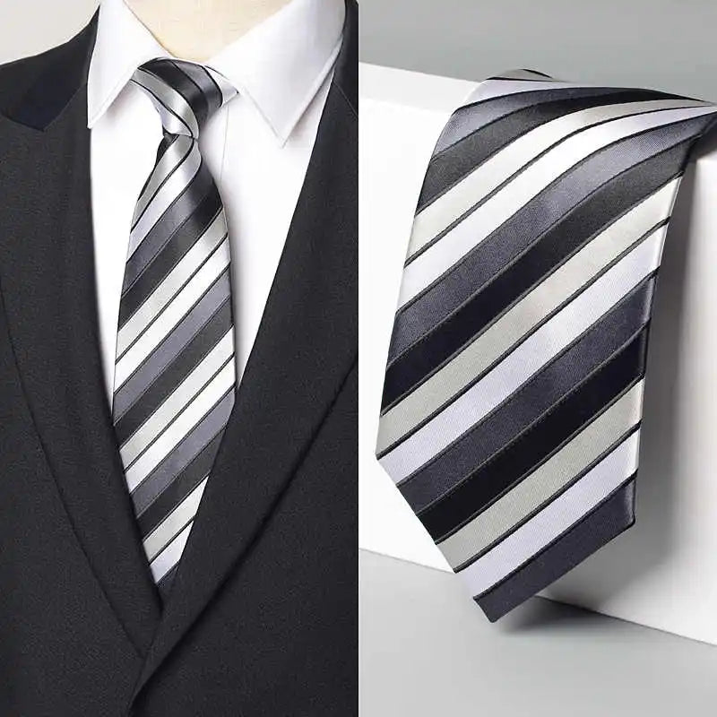 - Design Intemporel : Un motif à rayures sophistiqué mêlant le noir et le gris, facile à coordonner avec une grande variété de costumes et de chemises.