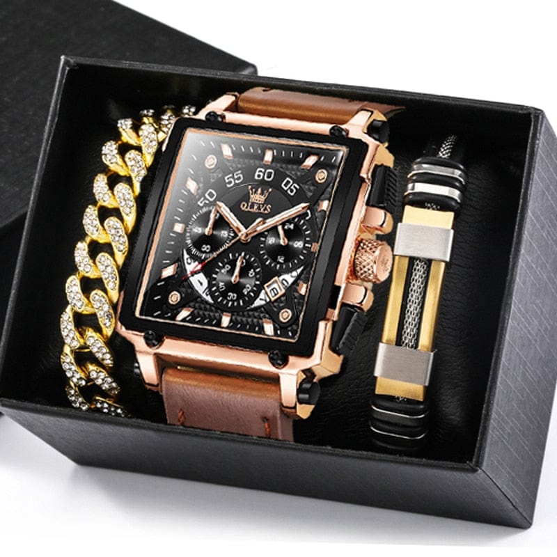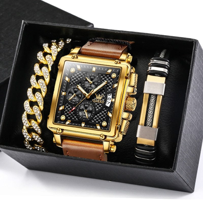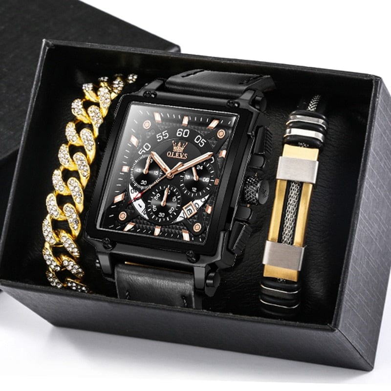 Ensemble Montre Homme Luxe avec 2 Bracelets - Coffret Cadeau Complet