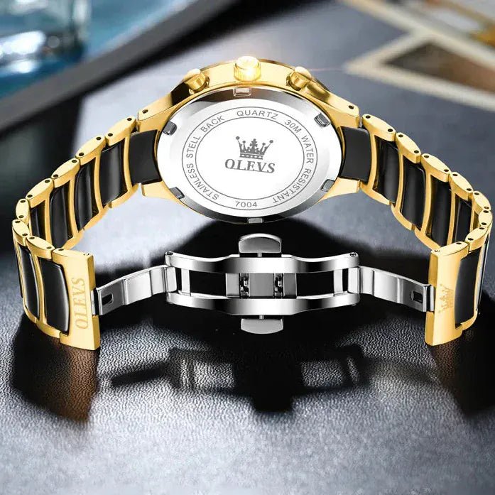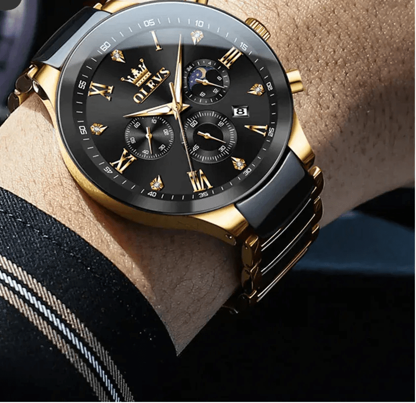 Montre Homme Chronographe Quartz Céramique - Phases de Lune Étanche