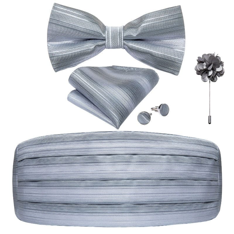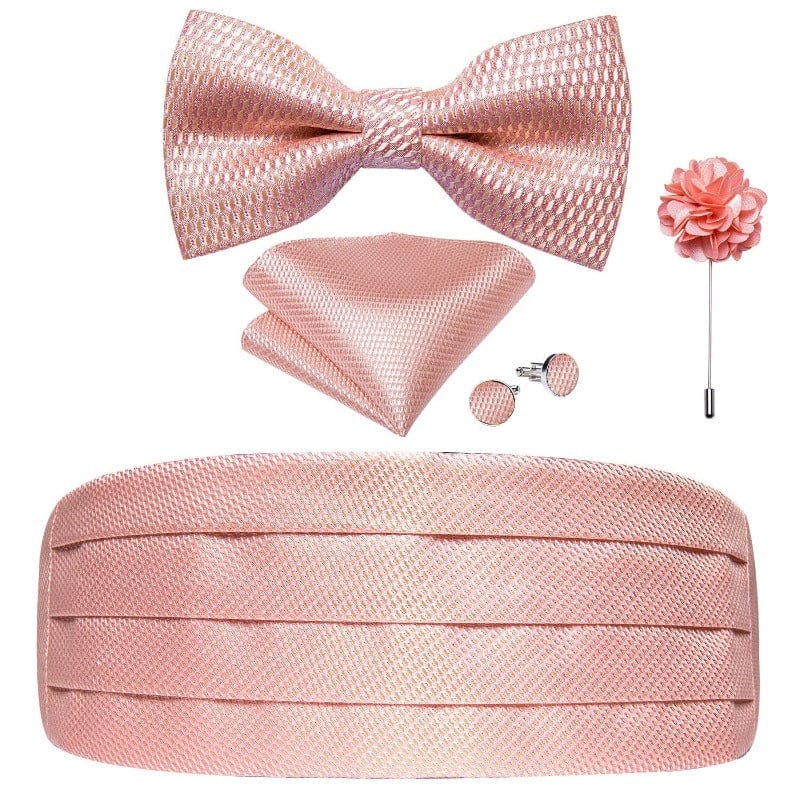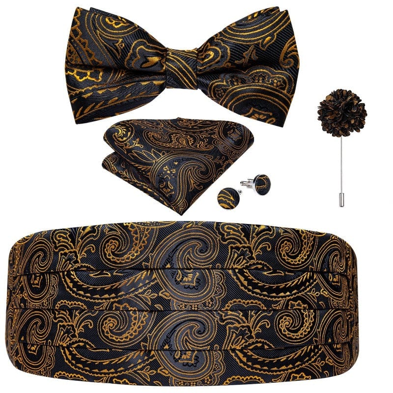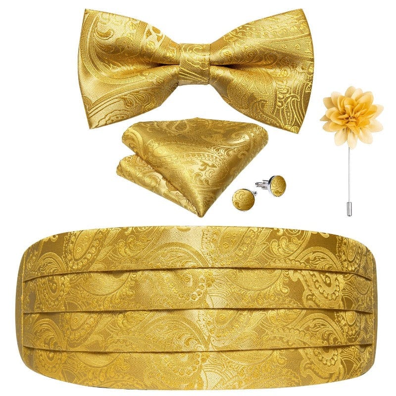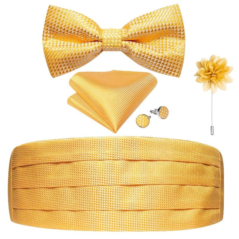 - Contenu : 1 cummerbund + 1 nœud papillon broche + 1 paire de boutons de manchette + 1 mouchoir de poche
