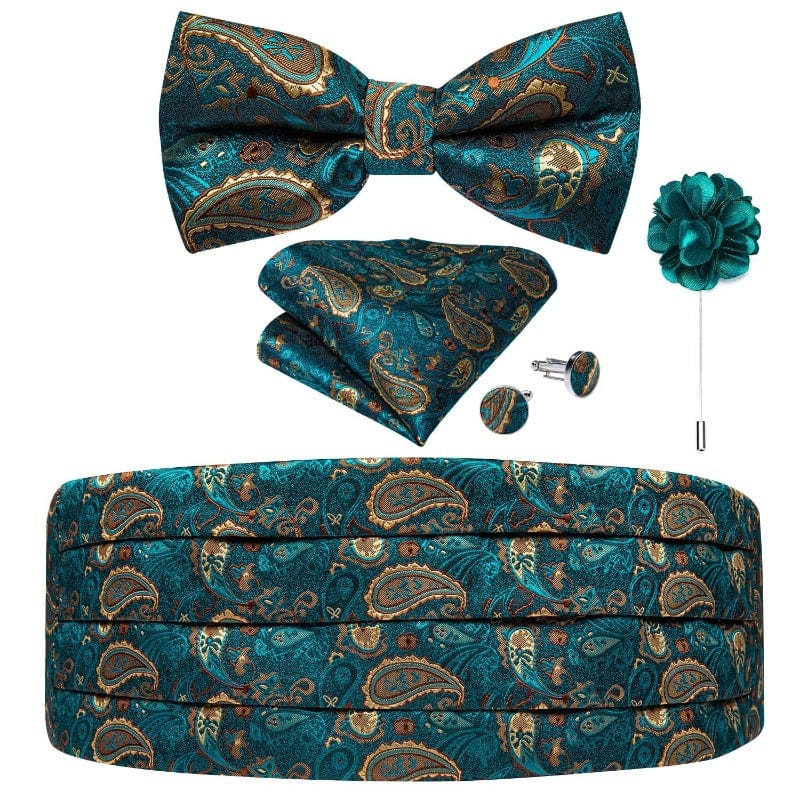 Sublimez votre tenue de soirée avec cet ensemble en soie luxueux comprenant une ceinture de costume élastique ajustable (cummerbund), un nœud papillon broche raffiné, des boutons de manchette élégants et un mouchoir de poche assorti. Parfait pour créer un look distingué lors de vos événements professionnels, célébrations, cérémonies ou occasions formelles. Idéal pour compléter votre smoking ou vos besoins uniformes.