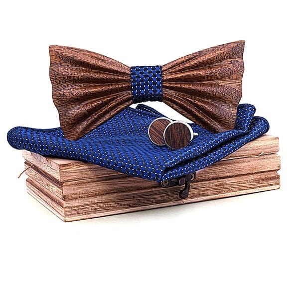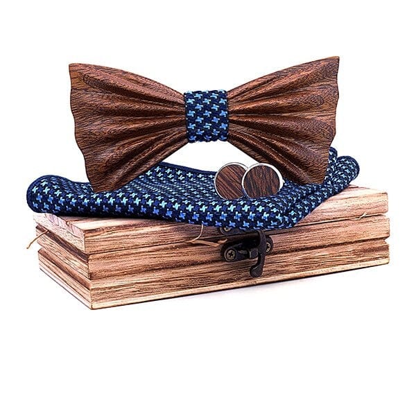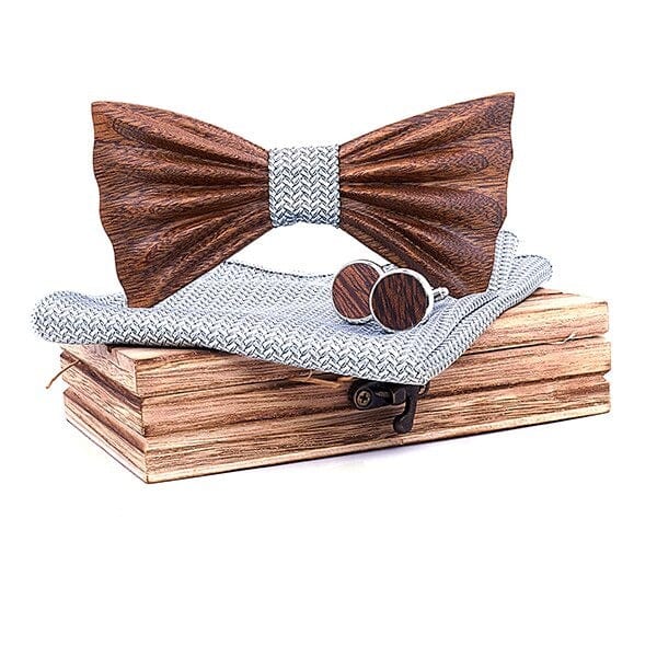 Cravate nœud Papillon en bois une paire boutons de manchette et pochette