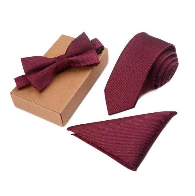Un coffret comprenant : Une cravate + Une pochette de costume assortie +nœud Papillon carré