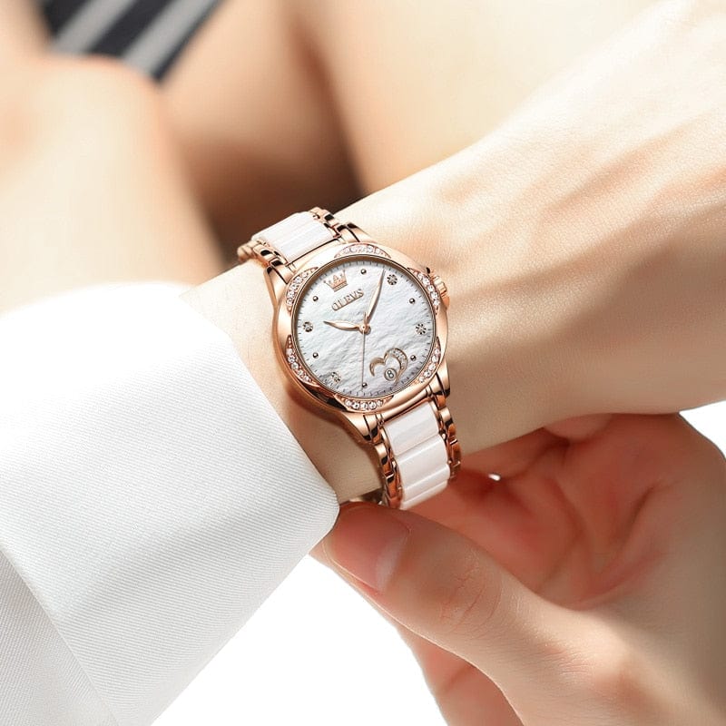 Beau cadran avec bracelet en céramique en acier inoxydable romantique et élégant, s'adapte à un usage quotidien.