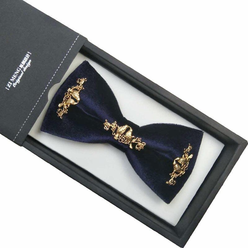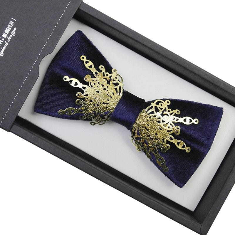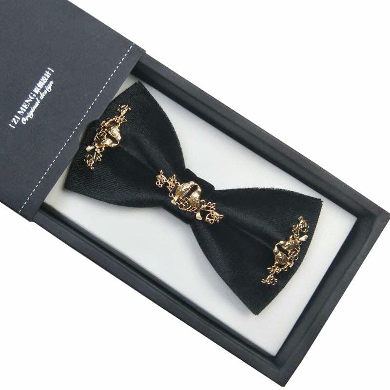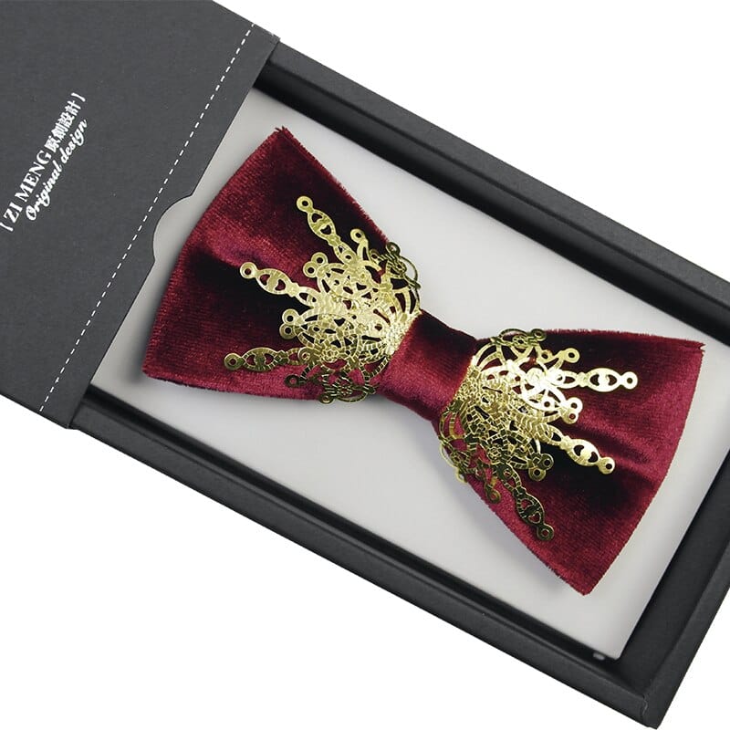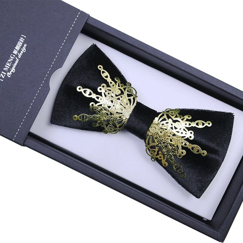 Nœud papillon velours luxe en métal doré pour hommes