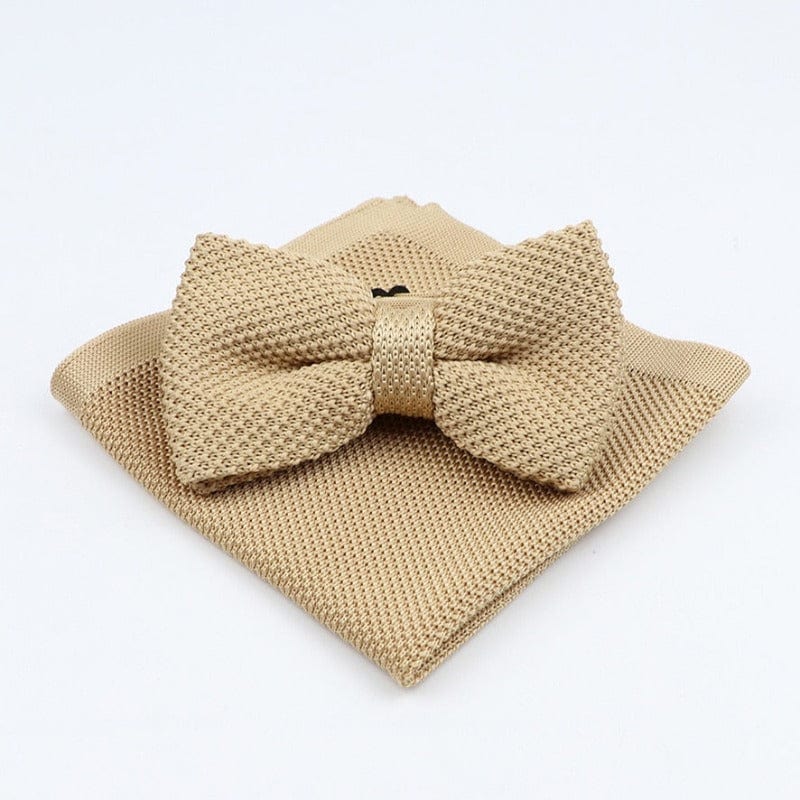 Nous vous proposons ce noeud papillon et pochette en tricot de soie